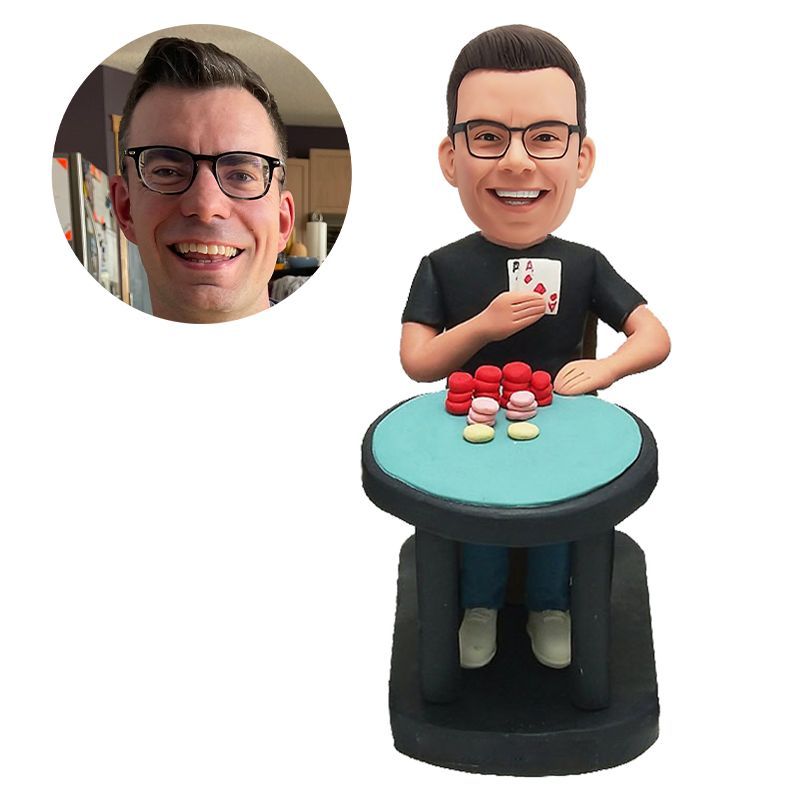 personalised bobble head figure gamer playing cards at the table